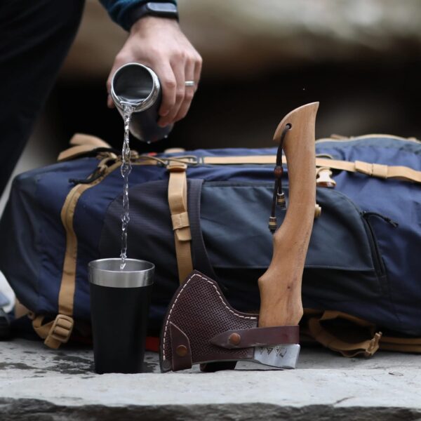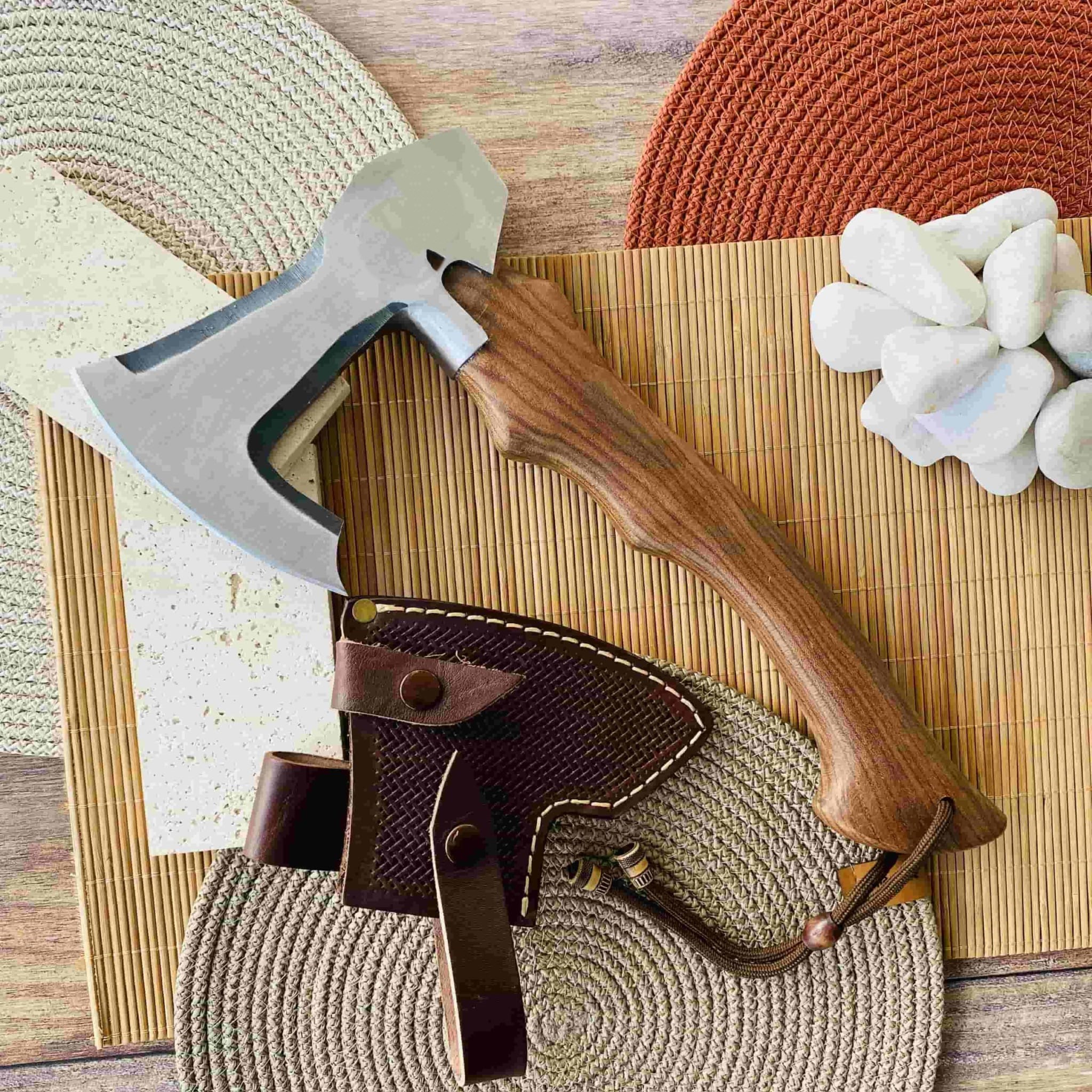 Dövme Çelik Sakallı Kamp Baltası (Deri Kılıflı)