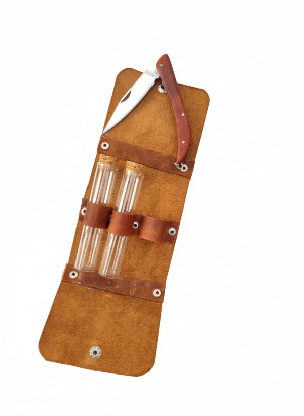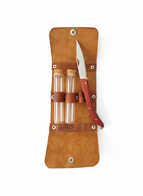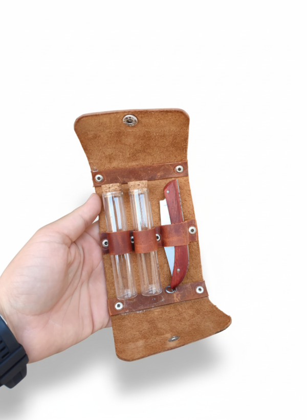 Hakiki Deri Kaplı Kamp Baharatlık Seti – 2 Tüp Baharatlık + Çakı | Hediye & Outdoor